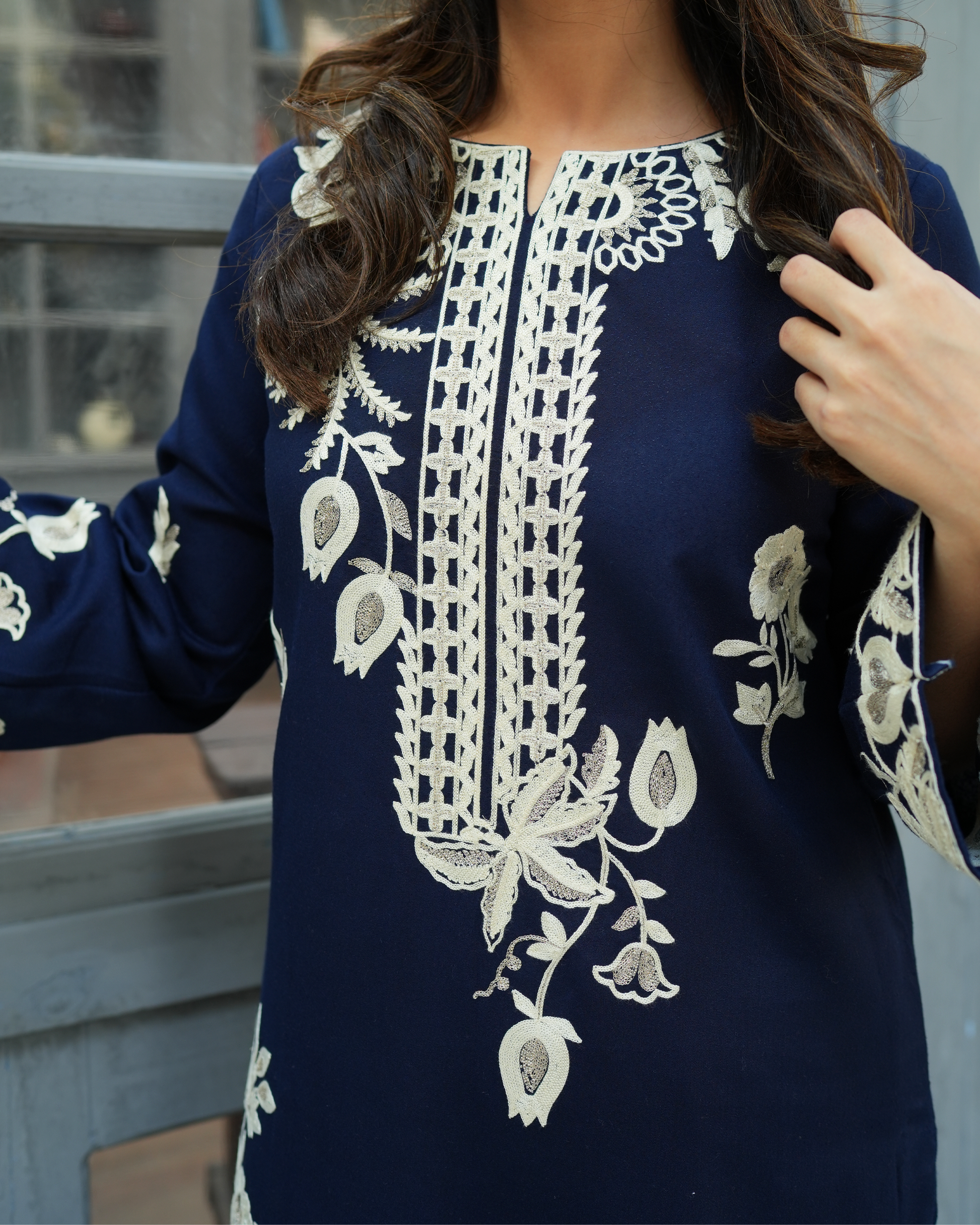 IF NEED DUPPATA COST RS.700.NINO KARA SAPLIMATION PRINTED. This exquisite Women's Navy Blue Cotton Linen Kurta Set is the perfect choice for daily wear. The long Kurta top features a regular fit with lining attached, ideal for all seasons. The set includes a 2-piece outfit with a beautifully designed top and bottom, making it a versatile addition to your wardrobe.This ensemble exudes elegance and comfort.