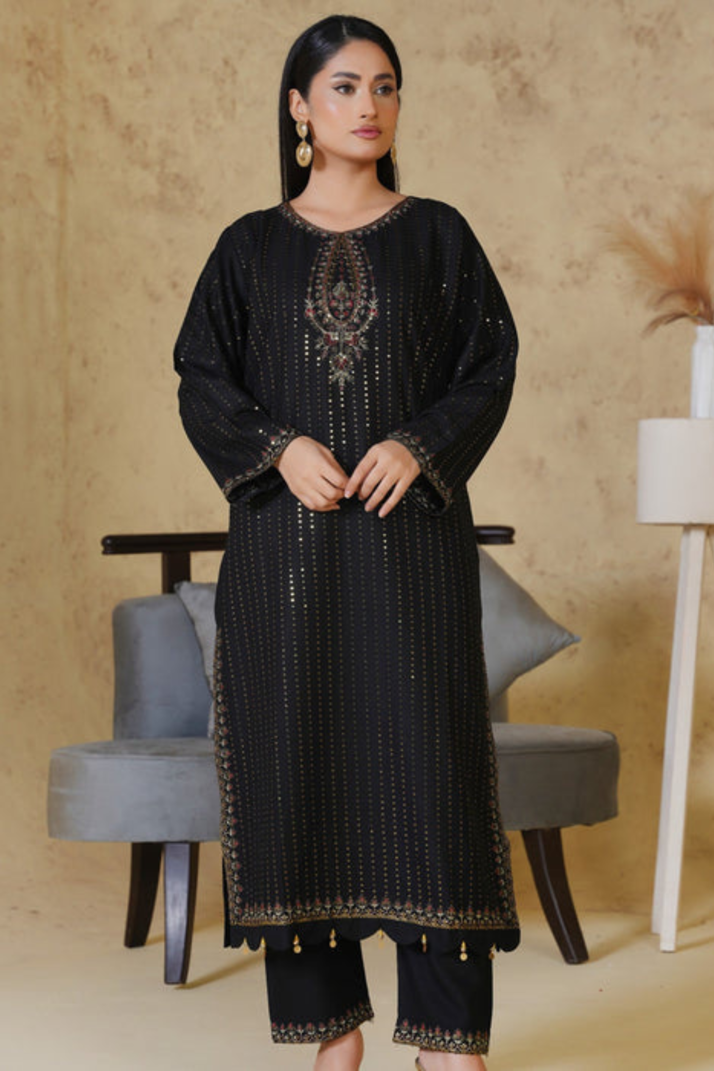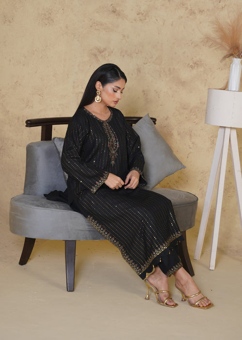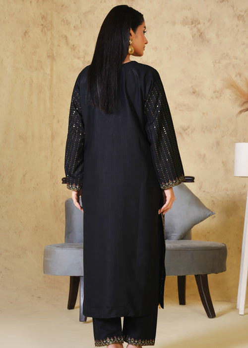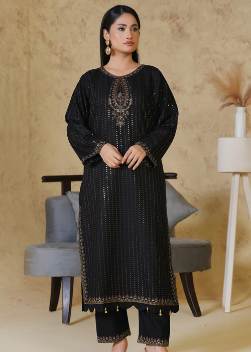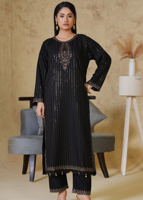 PIYA-2PC: Elegant Black Embroidered Suit 🖤
