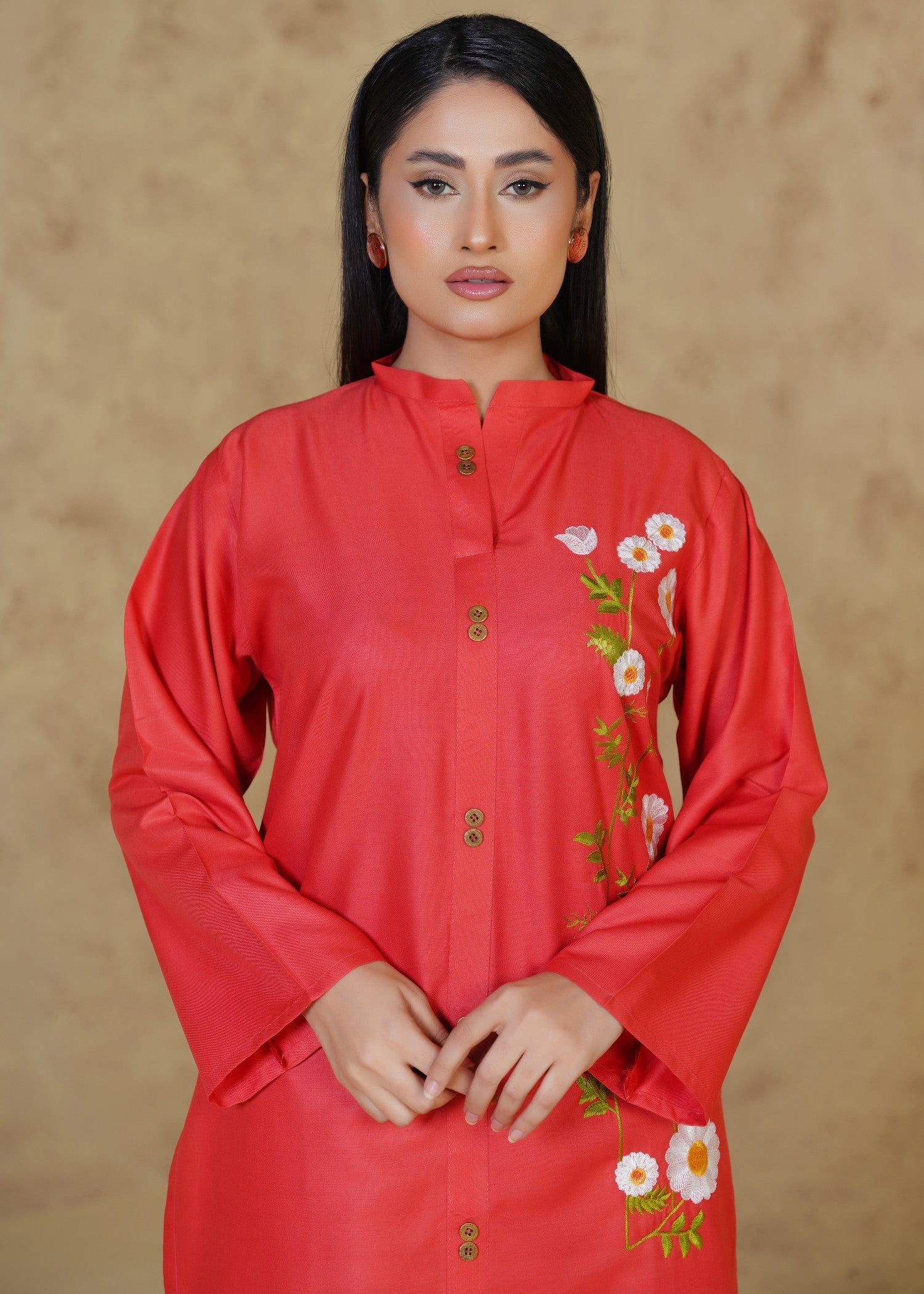 Embrace a fresh, contemporary look with this vibrant two-piece set, combining traditional embroidery with a modern, fusion style.